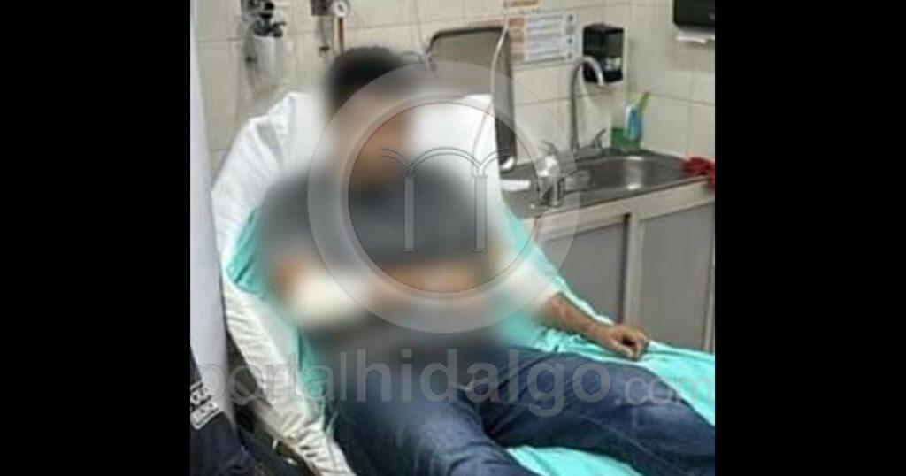 Ahí encontraron herido a Ignacio S., M., de 27 años de edad, vecino de la colonia San Pedro, el cual quedo bajo custodia policial, ya que la unidad en la que llegó, una de la marca Mazda color guinda, con placas XNS4446 cuenta con reporte de robo.