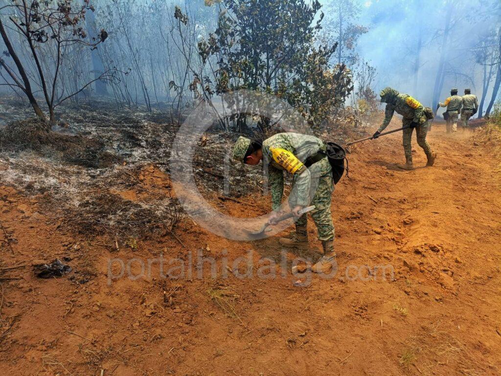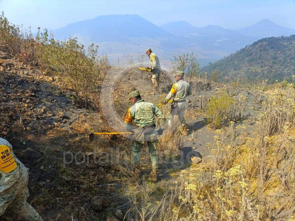 El personal militar realizó diversas labores de combate a incendios, empleando herramientas de mano para la elaboración de brechas corta fuego, con el fin de la controlar este incendio.