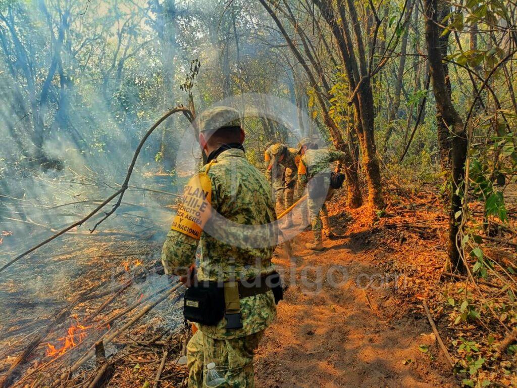 El personal militar realizó diversas labores de combate a incendios, empleando herramientas de mano para la elaboración de brechas corta fuego, con el fin de la controlar este incendio.