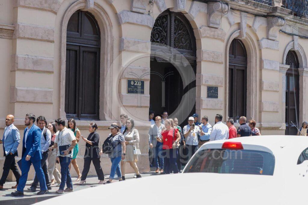 Encabezados por personal de Seguridad y Vigilancia, en coordinación con Protección Civil en el Estado, diputadas, diputados, funcionarios administrativos, personal en general e integrantes del Parlamento Abierto de Liderazgo Ambiental, abandonaron las instalaciones del Poder Legislativo para dirigirse a la Plaza Melchor Ocampo en donde se resguardaron por 20 minutos, hasta que la Brigada de Evacuación y Comunicación anunció que el edificio era seguro.