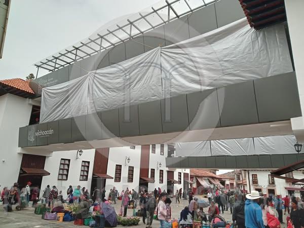 Apenas inaugurado, el nuevo mercado de Pátzcuaro ya presenta parches improvisados para mitigar los efectos de las primeras lluvias. Las imágenes que acompañan este texto no son simbólicas: son prueba tangible de un fracaso técnico y profesional. Los puentes recién construidos han tenido que ser cubiertos con lonas de plástico para contener goteras y filtraciones. ¿A alguien le queda duda del desastre?