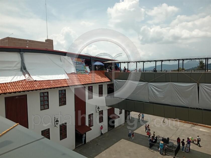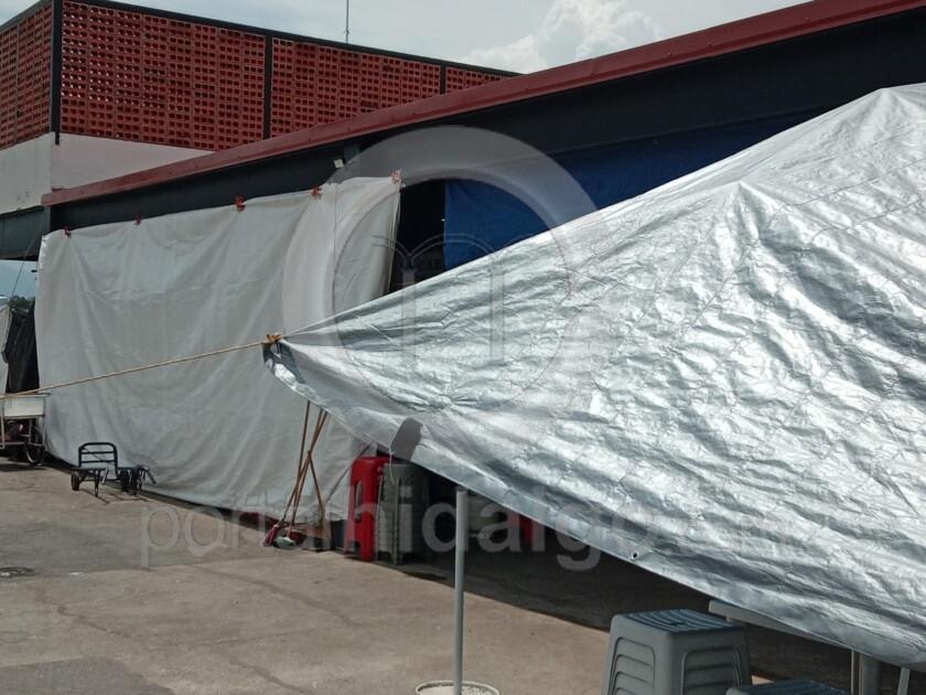 A menos de tres meses de su inauguración, el nuevo mercado municipal de Pátzcuaro está envuelto -literalmente- en lonas.