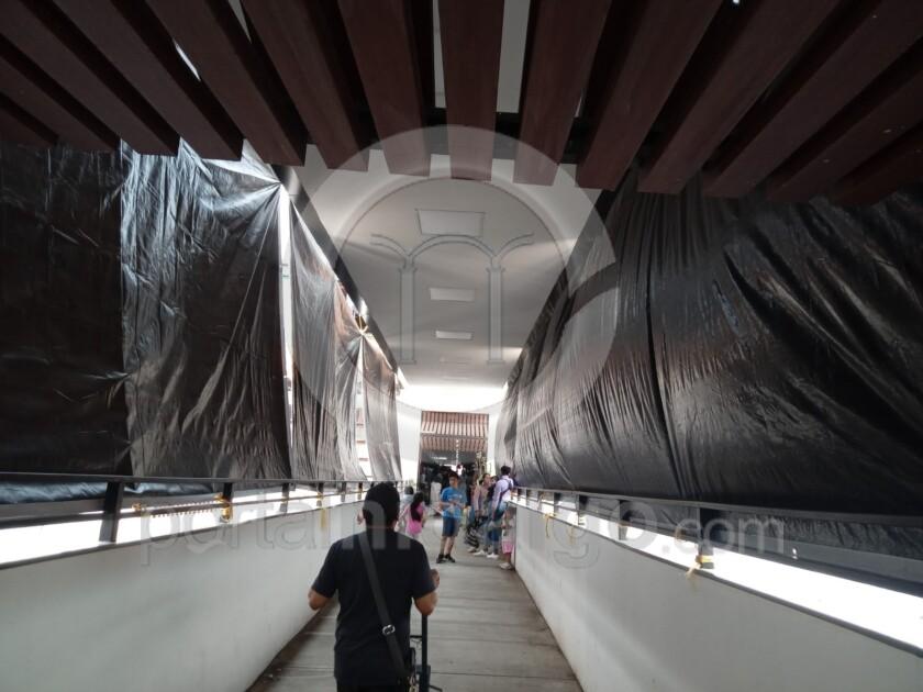 Lonas que cuelgan por los costados, cubren accesos, protegen pasillos y bloquean el sol que nunca debió filtrarse de ese modo.