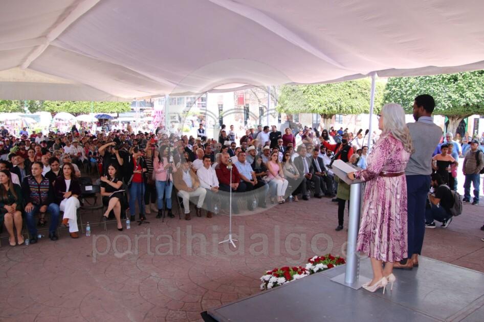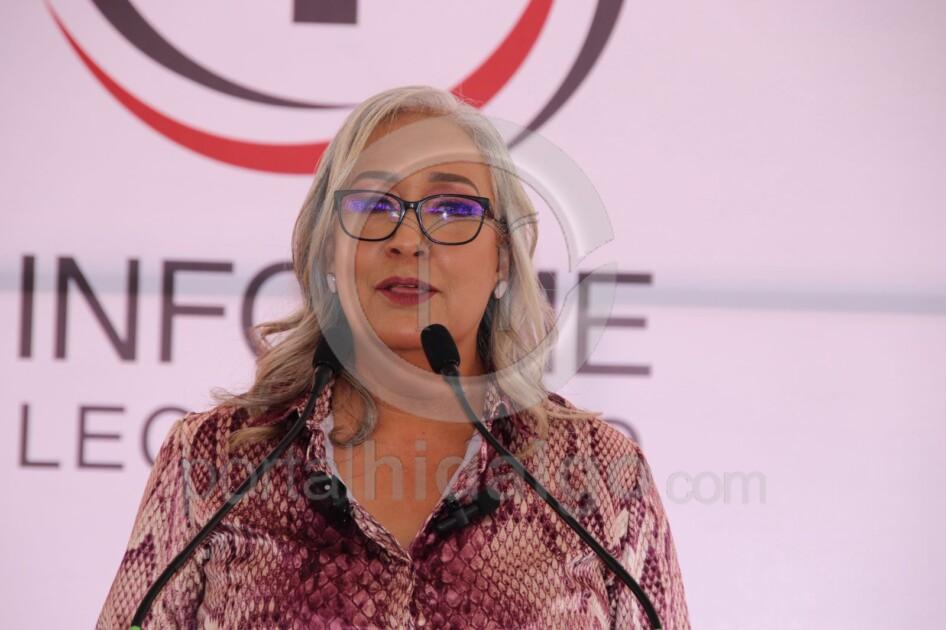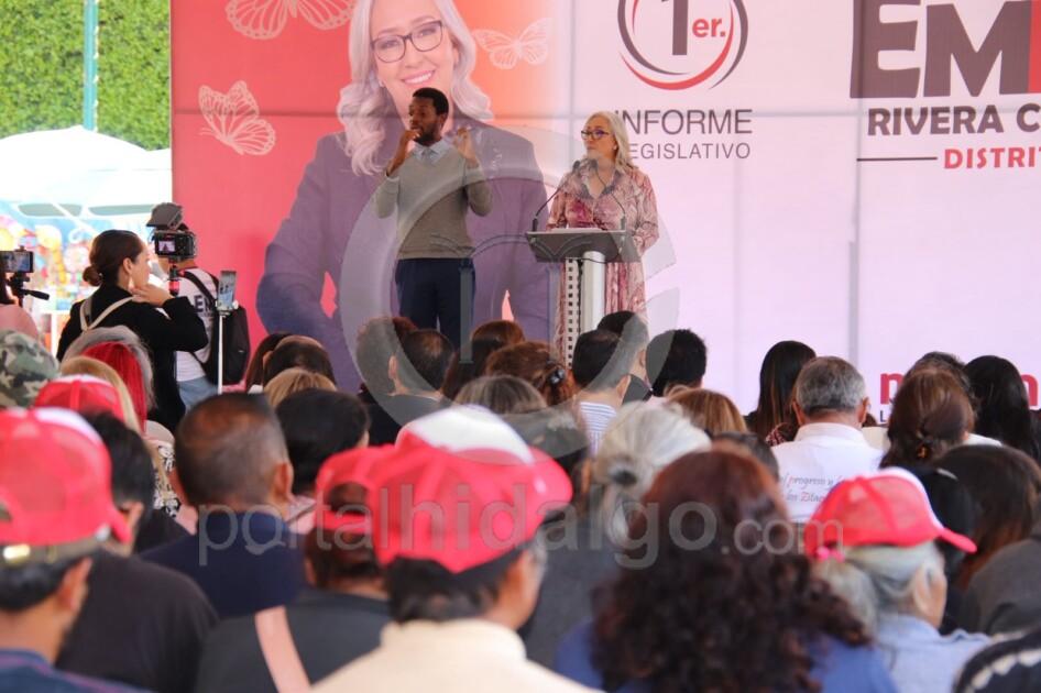 Zitácuaro, Mich.-En la plaza principal ante ciudadanos, presidentes municipales, y diputados locales, la legisladora Emma Rivera Camacho rindió su informe legislativo.