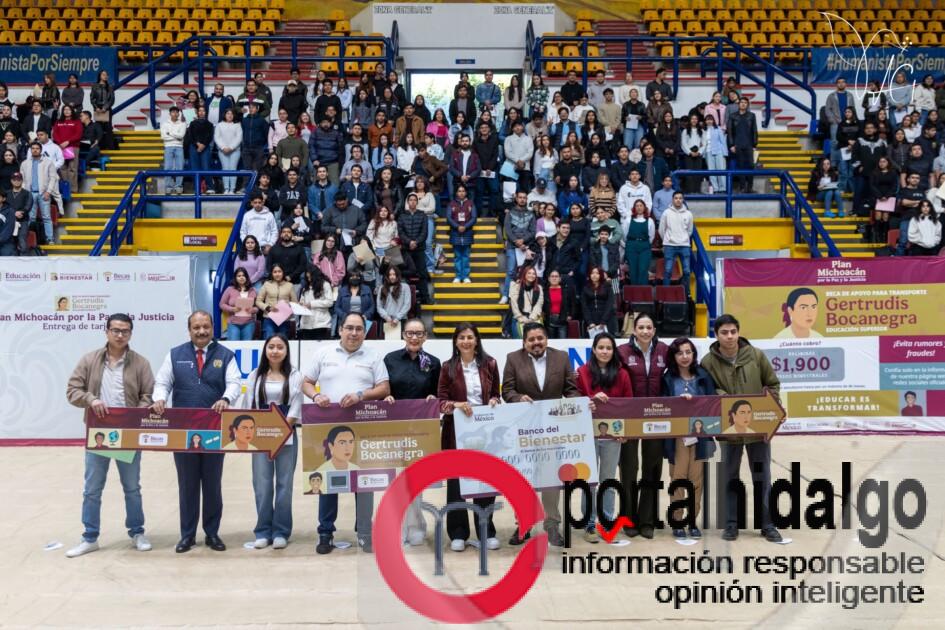 En su turno, el coordinador estatal de la Becas para el Bienestar, Juan Pablo Calvillo, indicó que esta beca fue creada por el Gobierno de México para todas y todos los estudiantes de educación superior, exclusivo para el estado de Michoacán, tras precisar que es un apoyo de mil 900 pesos bimestrales para que las y los jóvenes puedan apoyarse para sus gastos de transporte, “es importante que la utilicen para continuar con sus estudios universitarios y no los abandonen”.