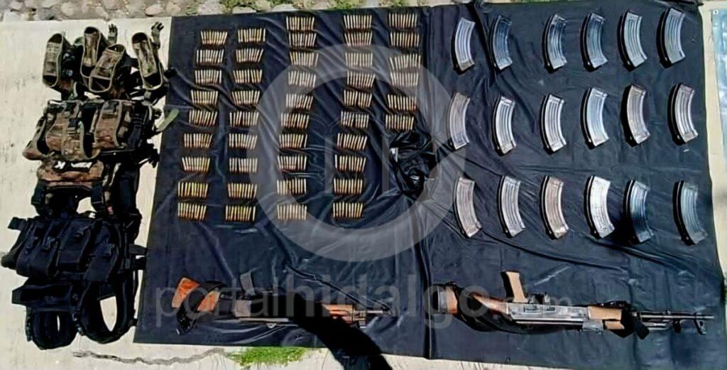 De inmediato los uniformados les marcaron el alto a Jonathan Julián C., alias “El Fantasma”, originario de Hermosillo, Sonora y Armando L., apodado como “El Negro”, originario de CDMX, ambos de 21 años de edad y quienes estaban en posesión de dos armas largas, 18 cargadores, 440 cartuchos y diverso equipo táctico.