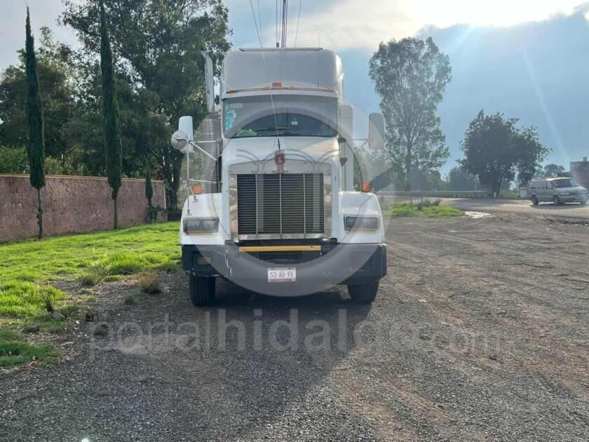 Tractocamión Kenworth, color blanco, con matrícula 53AR9V. Y coche Volkswagen Vento Sport, color gris, con matrícula mexiquense NZM7173.