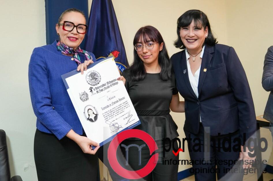 Por su parte, la directora de Control Escolar, indicó que durante la gestión de la rectora Yarabí Ávila se ha fortalecido el área de Titulación y se ha dignificado la entrega de Títulos. “Culminar este tipo de etapas concreta uno de los pasos más importantes que hacemos a lo largo de nuestra vida, hoy se llevan una herramienta muy importante que les va a abrir puertas pero también consolida esa fortaleza en sus familias y esos sueños”, enfatizó ante las y los egresados.