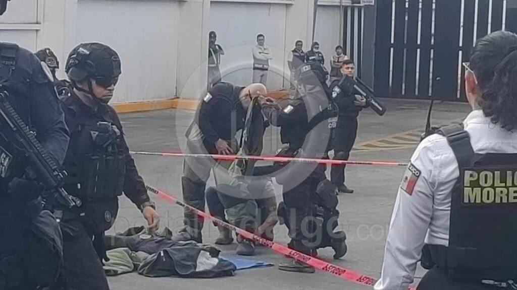 Luego de aproximadamente dos horas, los mencionados especialistas se trasladaron desde Apatzingán hasta la capital michoacana, y al arribar a la escena, uno de ellos se colocó un traje antibombas, luego se cercó al objeto y lo escaneó.