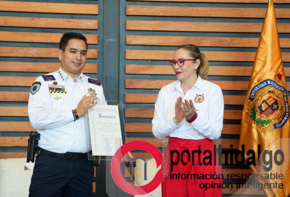 De igual forma, la rectora Yarabí Ávila, destacó la presencia del secretario de Seguridad y Protección Ciudadana de Morelia, José Pablo Alarcón, quien dijo, motiva a las y alumnos, en este marco, agradeció el apoyo que la UMSNH ha tenido por parte de la dependencia municipal cuando se ha requerido, al tiempo que, solicitó seguir contando con su respaldo para que las y los jóvenes nicolaitas caminen tranquilos en las calles.