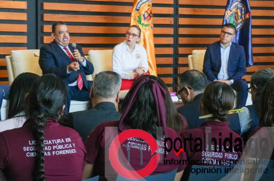 La rectora reconoció la trayectoria de ambos funcionarios, a quienes agradeció su participación en esta actividad dirigida a alumnas y alumnos de las licenciaturas en Derecho, en Seguridad Pública y Ciencias Forenses, y en Psicología, con quienes compartieron sus conocimientos en aras de fortalecer su formación académica.
