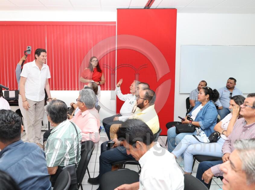 En esta reunión estuvo acompañado por la Secretaria de Fomento Económico, Guadalupe Herrera Calderón; Karla Martínez Martínez, asesora de la Comisión Reguladora del Transporte; así como Gerardo Valdés Escobar, CEO de Harinera Monarca, entre otros representantes empresariales y funcionarios.