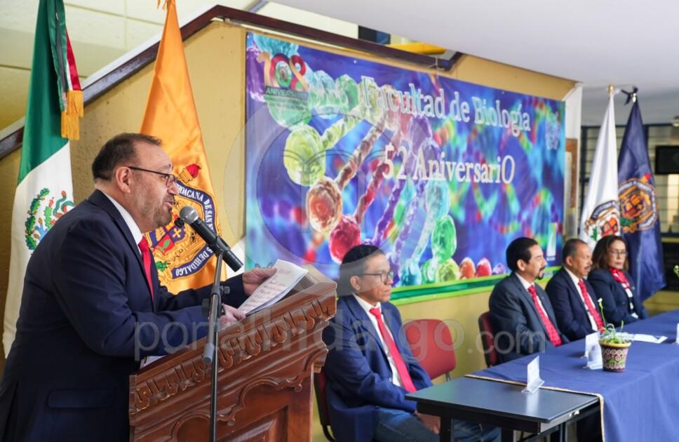 Durante el evento en el que también se inauguró la Semana de la Biología 2025, el coordinador general de Estudios de Licenciatura, José Antonio Luna Delgado, en representación de la rectora Yarabí Ávila González, felicitó a la comunidad que integra la dependencia, tras señalar que son 52 años de grandes esfuerzos en donde sigue persistiendo la calidad de la facultad.