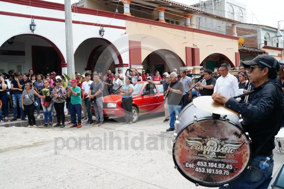La tarde de este miércoles, en punto de las tres, los rostros conocidos: regidores, trabajadores del Ayuntamiento, comerciantes, vecinos, comenzaron a llenar el sitio de despedida de la munícipe. Hubo música y palabras de adiós, con evidente dolor, mientras los féretros de Martha Laura y su esposo Ulises Sánchez Ochoa estaban rodeados de escoltas con los rostros endurecidos. Luego, les colocaron la Bandera de México.