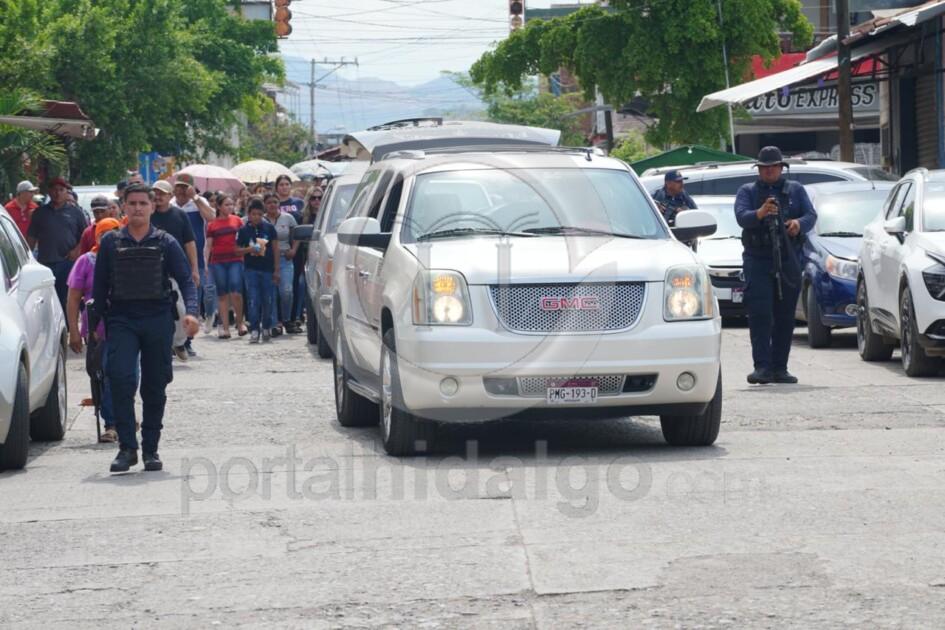 El cortejo avanzó después por las calles polvosas del municipio, envuelto en un sol hiriente y el eco de murmullos que hablaban del miedo: del crimen que sacudió a la presidenta, de los grupos que pelean la plaza, de los “Naranjos”, del “Abuelo”, de las fracturas internas del cártel que nació aquí mismo.