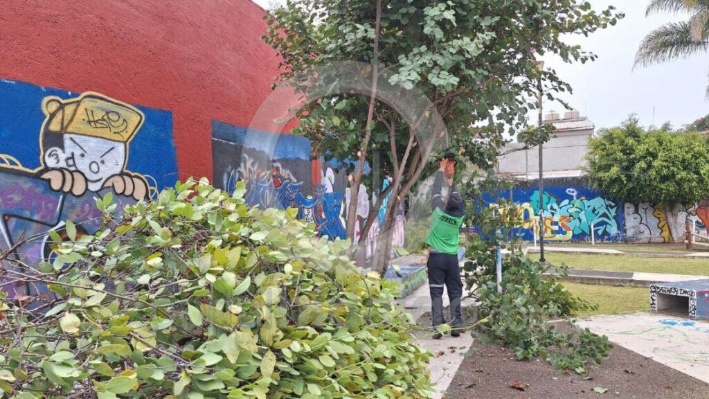 Personal de la Secretaría de Servicios Públicos Municipales, cuyo titular es el secretario Netzahualcóyotl Vázquez Vargas, desde temprana hora comenzaron la poda de árboles cuyas hojas y ramas crecieron considerablemente durante la temporada de lluvias.