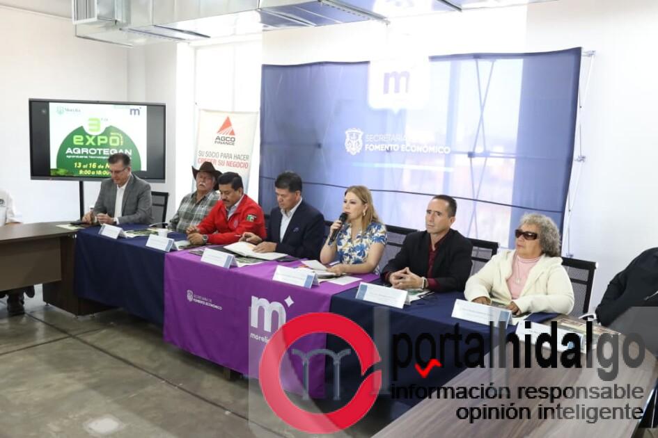 La secretaria de Fomento Económico, María Guadalupe Herrera Calderón, invitó a productores, empresarios, ganaderos, transformadores y público en general a la tercera edición de la Expo Michoacán Agrotegan 2026, agroindustrial, tecnológica y ganadera, que se llevará a cabo del 13 al 16 de mayo de 2026, en un horario de 9:00 a 18:00 horas, en el ejido El Reparo, ubicado en el kilómetro 19 de la carretera a Pátzcuaro, en la tenencia de Santiago Undameo.