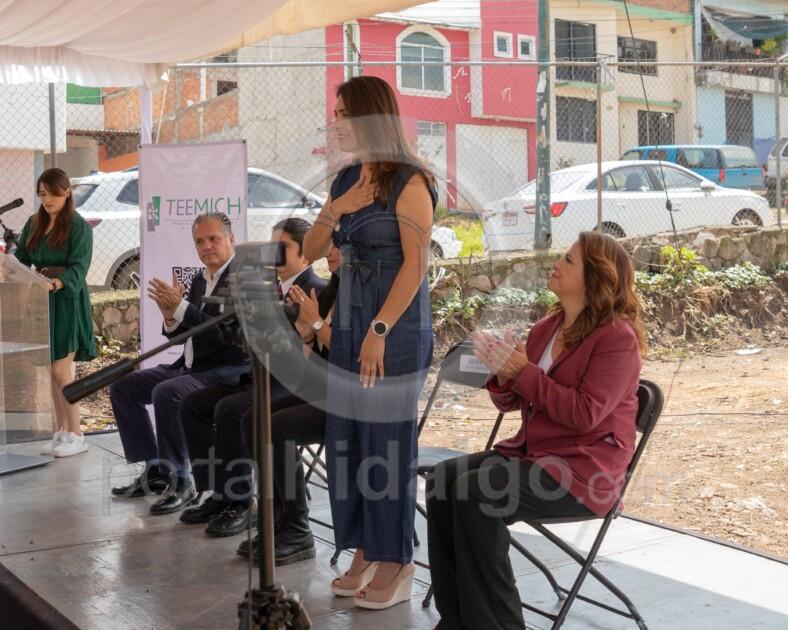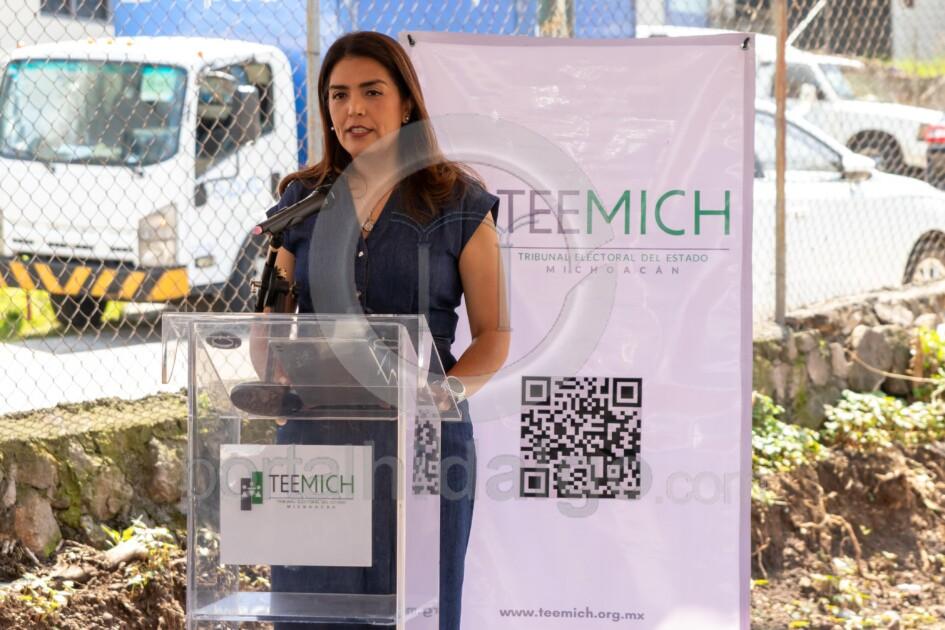 En representación del presidente de Morelia, Alfonso Martínez Alcázar, la síndica municipal Susan Melissa Vásquez Pérez, participó en la colocación de la primera piedra y develación de la placa de lo que será la nueva sede del Tribunal Electoral del Estado de Michoacán (TEEMICH).