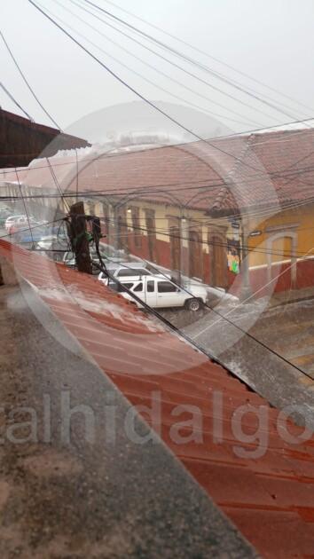 Tancítaro, Mich.-Una fuerte granizada cubrió este sábado calles, patios y plazas de esta cabecera municipal con una gruesa capa de hielo, dejando a su paso un paisaje completamente blanco que, aunque llamativo, forma parte de los fenómenos recurrentes en esta zona montañosa del occidente michoacano.