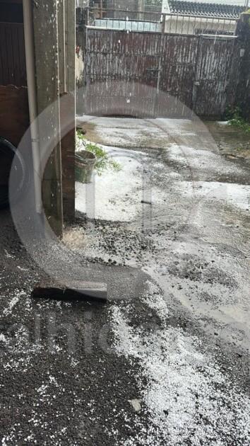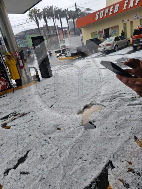 La tormenta inició por la tarde, acompañada de lluvia intensa y ráfagas de viento. En cuestión de minutos, el granizo comenzó a acumularse, formando capas de varios centímetros que tapizaron el suelo, tejados y estructuras ligeras.