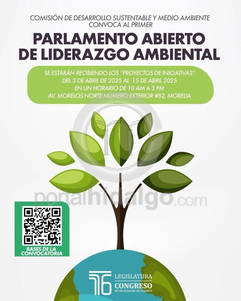 Si tienes entre 18 y 65 años y resides en Michoacán, esta es tu oportunidad para marcar la diferencia. El Parlamento Abierto de Liderazgo Ambiental 2025 abre sus puertas para recibir iniciativas ciudadanas enfocadas en temas cruciales como el cambio climático, la deforestación, la gestión del agua, la biodiversidad y el bienestar animal.