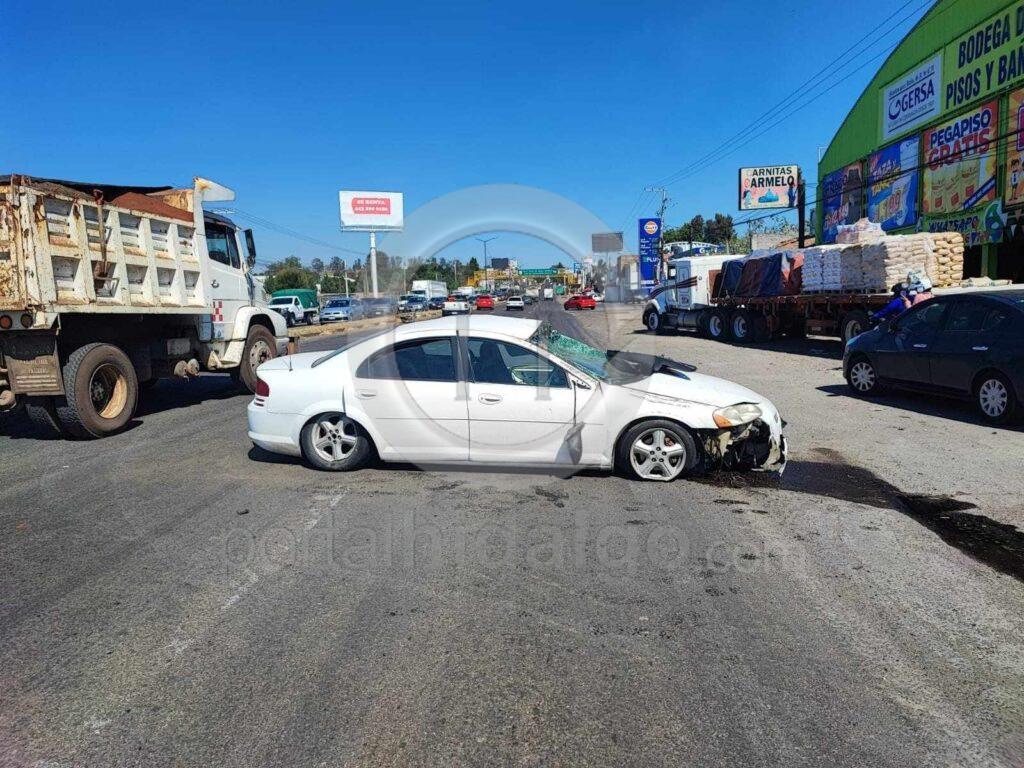 Unos agentes de vialidad abanderaron el incidente, además efectuaron el peritaje correspondiente y una grúa retiró el carro siniestrado, el cual es un Dodge Stratus, color blanco..