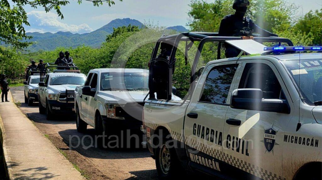 Parácuaro, Mich.-Delincuentes fuertemente arm4dos atacaron a balaz0s a personal de la Guardia Civil en la periferia de este municipio, siendo abat1dos dos de los agresores, en el lugar las autoridades aseguraron armamento y una camioneta robada.