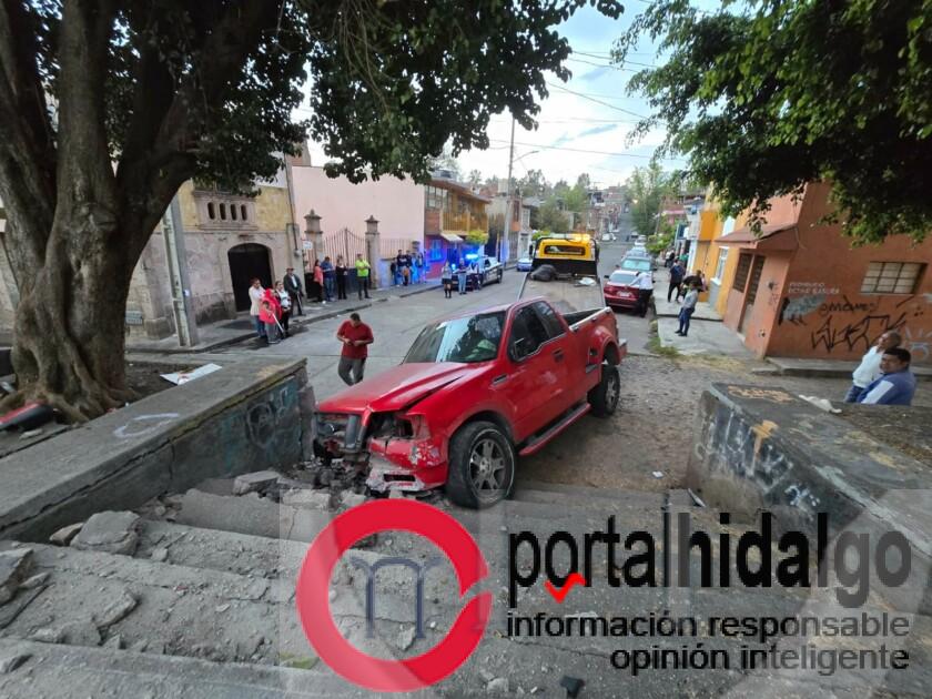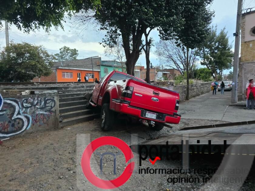 La camioneta continuó avanzando poder detenerse, así que para evitar un percance mayor, el conductor ingresó a la calle Amado Nervo, donde se estrelló contra los escalones de concreto de una jardinera ubicada a la orilla de las vías férreas.