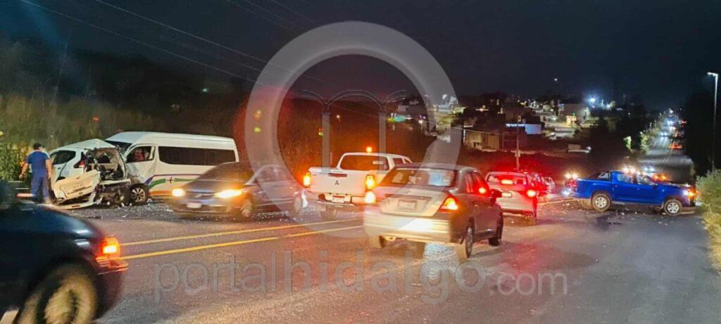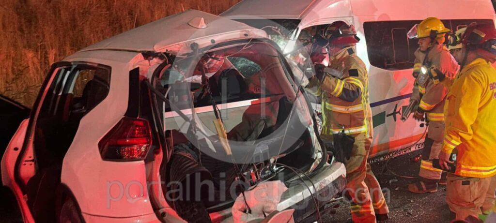 Los otros dos vehículos implicados en la colisión son una camioneta tipo van de transporte terrestre del Aeropuerto Internacional de Morelia, y una camioneta pick up color azul.