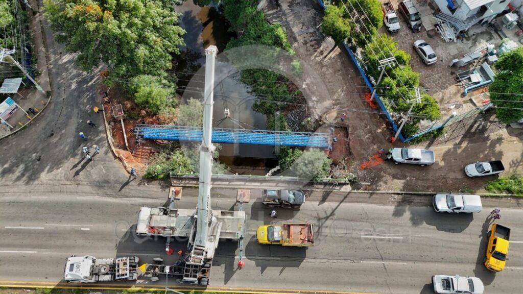 La estructura instalada consiste en tres líneas de tubería de acero cédula 30, con un diámetro de 16 pulgadas cada una y una longitud de 26 metros por línea, dando un total de 78 metros lineales de conducción sobre el cruce del río.