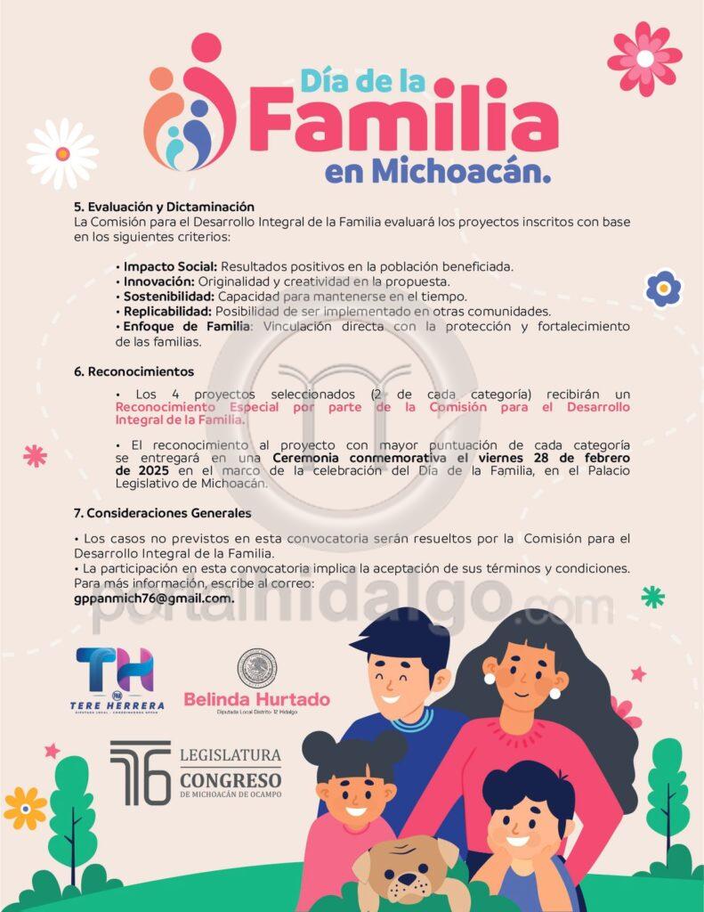 Las diputadas detallaron que quienes deseen participar en esta convocatoria tienen hasta el 17 de febrero para presentar sus proyectos; y los mejores 4 recibirán un reconocimiento especial por parte de las diputadas que integran la Comisión para el Desarrollo Integral de la Familia.