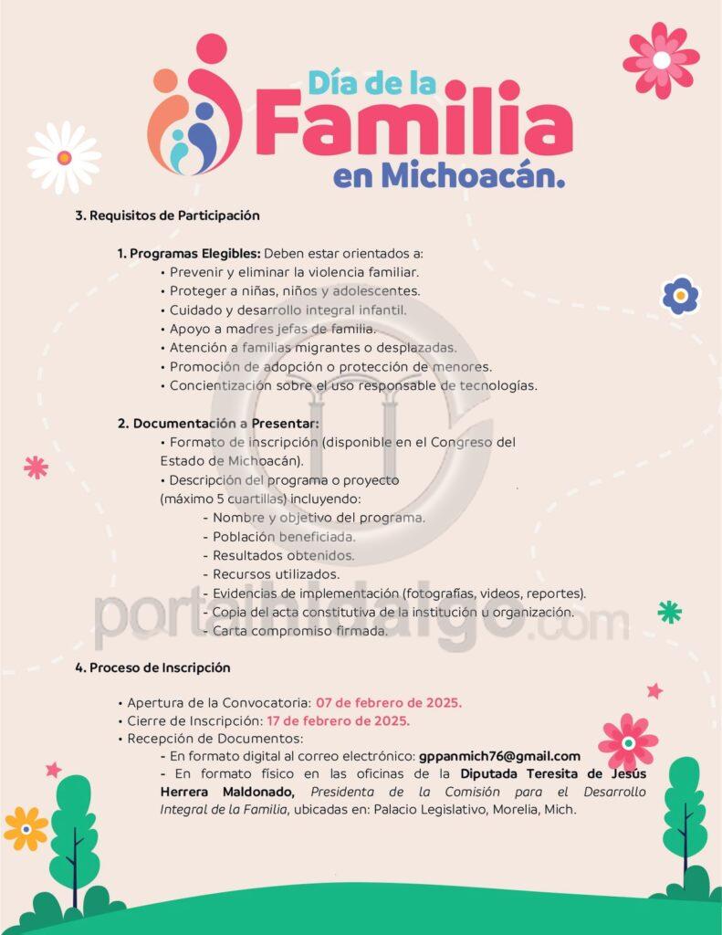 Las diputadas detallaron que quienes deseen participar en esta convocatoria tienen hasta el 17 de febrero para presentar sus proyectos; y los mejores 4 recibirán un reconocimiento especial por parte de las diputadas que integran la Comisión para el Desarrollo Integral de la Familia.
