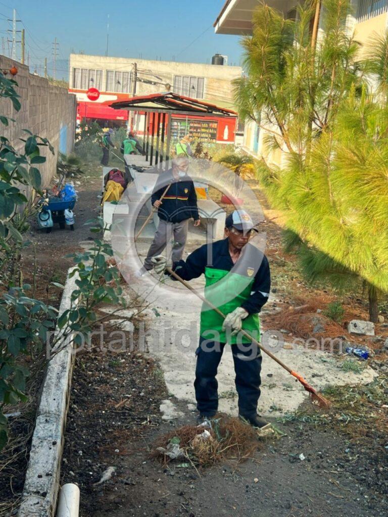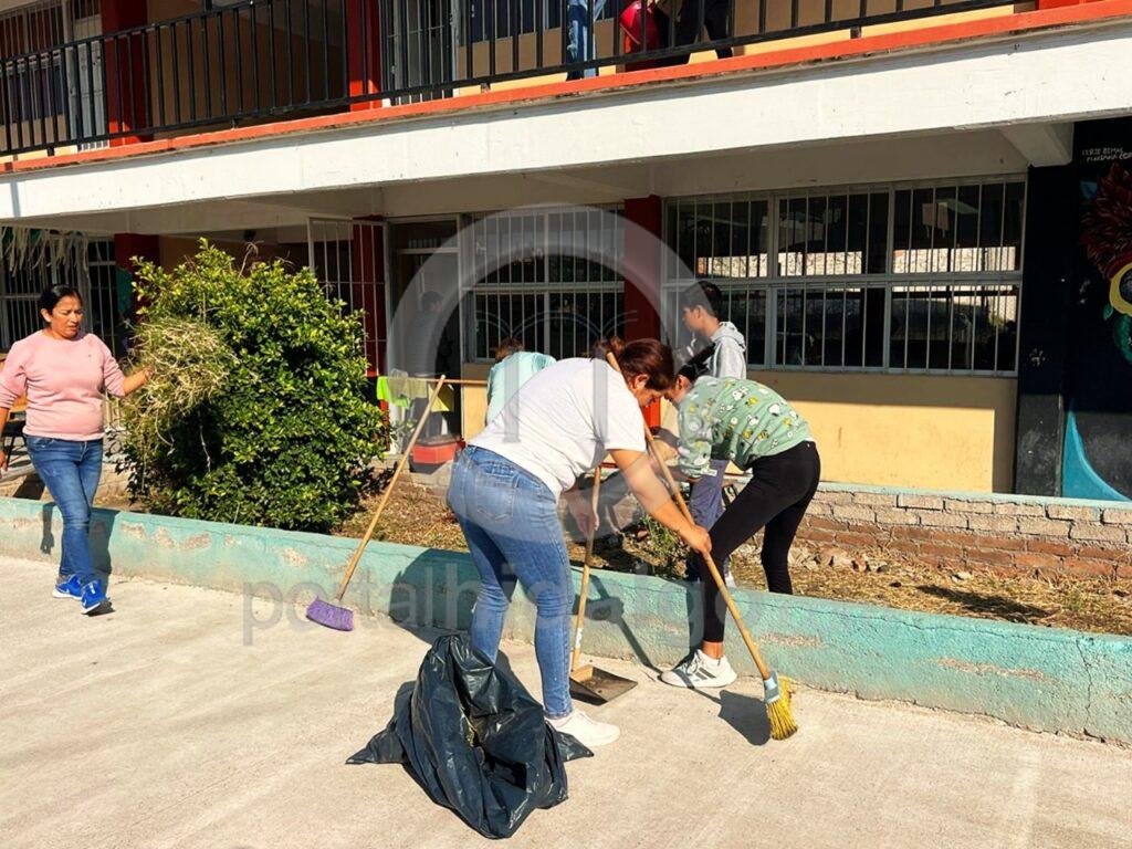 Al interior de la Secundaria Técnica, maestros, padres de familia y alumnos, se sumaron a las tareas de limpieza, realizadas por el personal de Ayuntamiento, limpiando las instalaciones y áreas verdes de la escuela, además de realizar el retiro de escombro y basura.