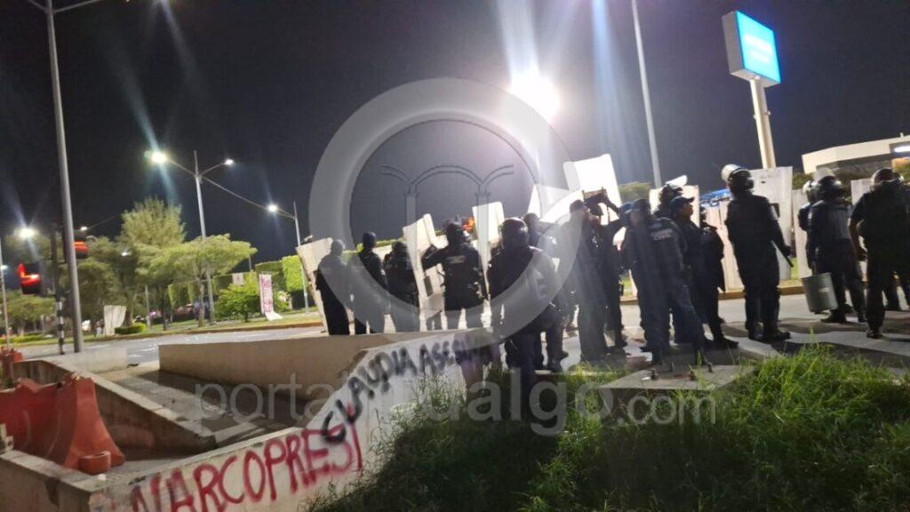 Durante varios minutos se vivieron momentos de tensión, la circulación vehicular fue cerrada hasta que finalmente los manifestantes fueron replegados, sin que se reportaran lesionados.