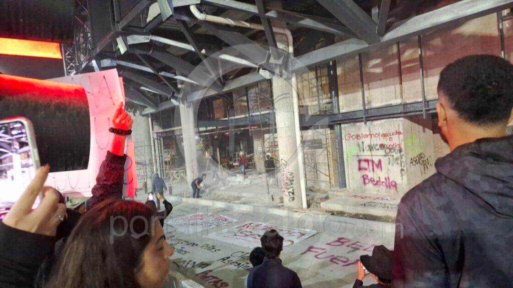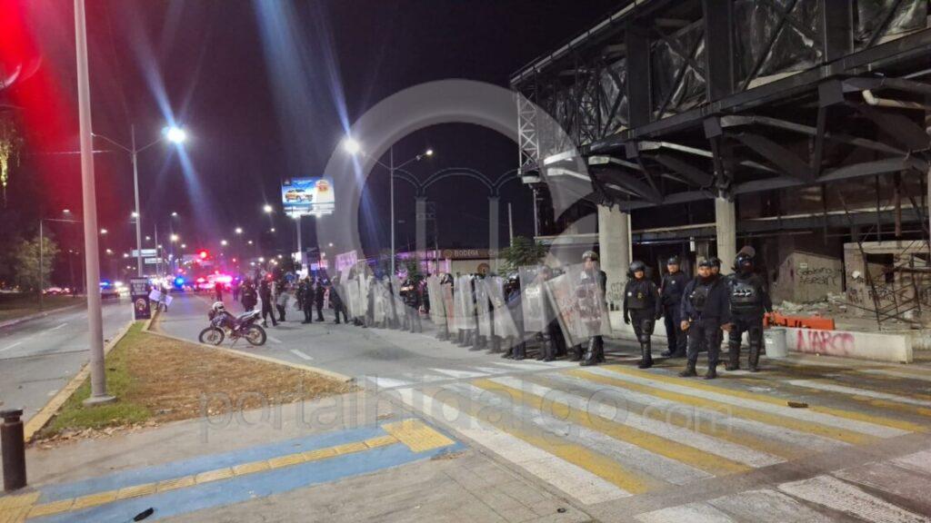 Uruapan, Mich.- 03 de noviembre de 2025.- La noche este lunes, decenas de jóvenes se manifestaron en las estaciones del Teleférico de la Presidencia Municipal y Plaza Ágora, las cuales vandalizaron y posteriormente fueron replegados por elementos de la Unidad de Restablecimiento del Orden Público, de la Guardia Civil, extraoficialmente habría al menos 5 personas requeridas.