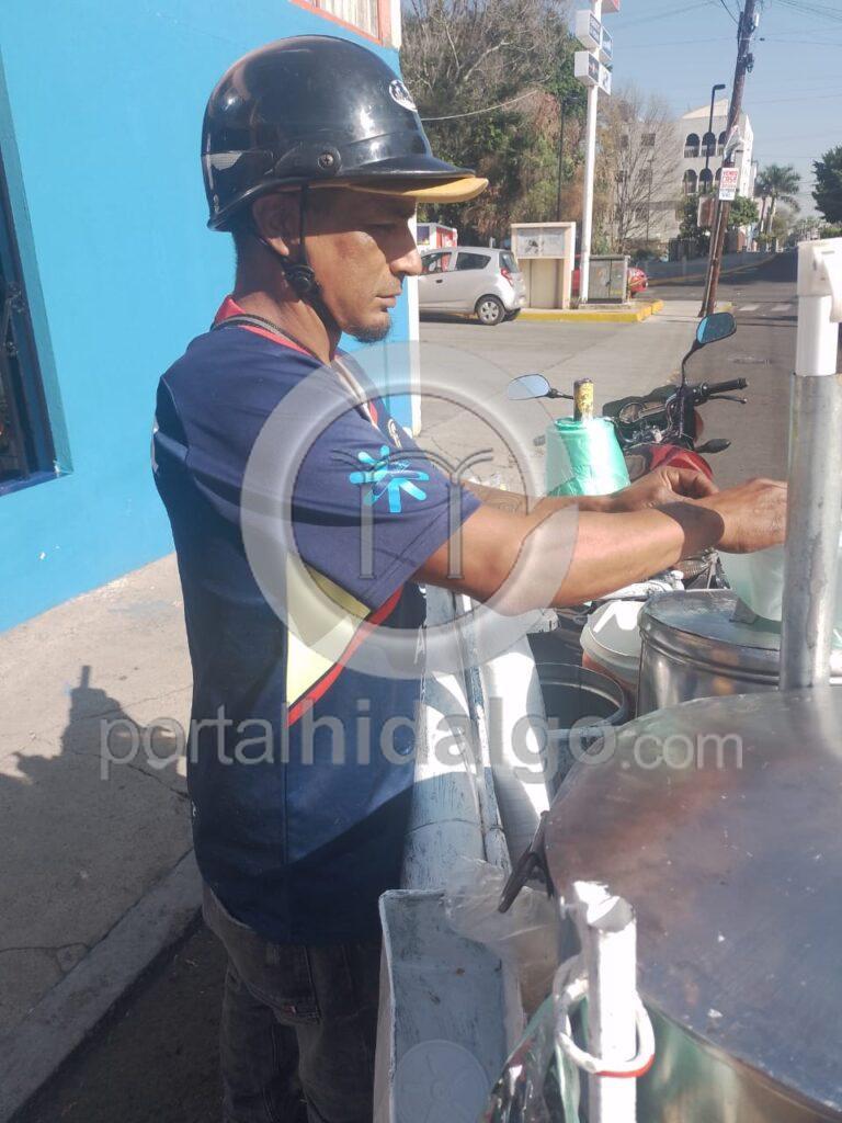 El trabajo es como la maldad, no descansa, señala Darío “N” un hombre dedicado a la venta de tamales y atole en el Hospital del Seguro Social de Camelinas.