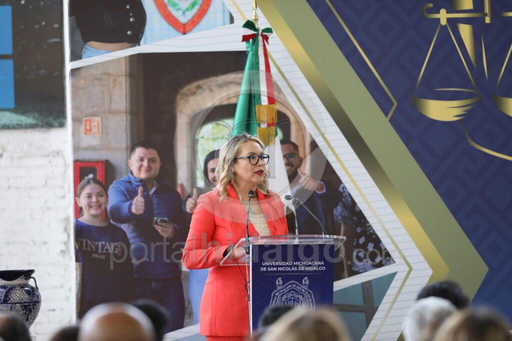 Con la presencia de representantes del Poder Legislativo y Judicial, funcionariado estatal y comunidad nicolaita, el mandatario señaló que la carrera de Derecho es trepidante y emocionante, “porque podemos transformar la realidad social a través del Derecho y de las leyes”.