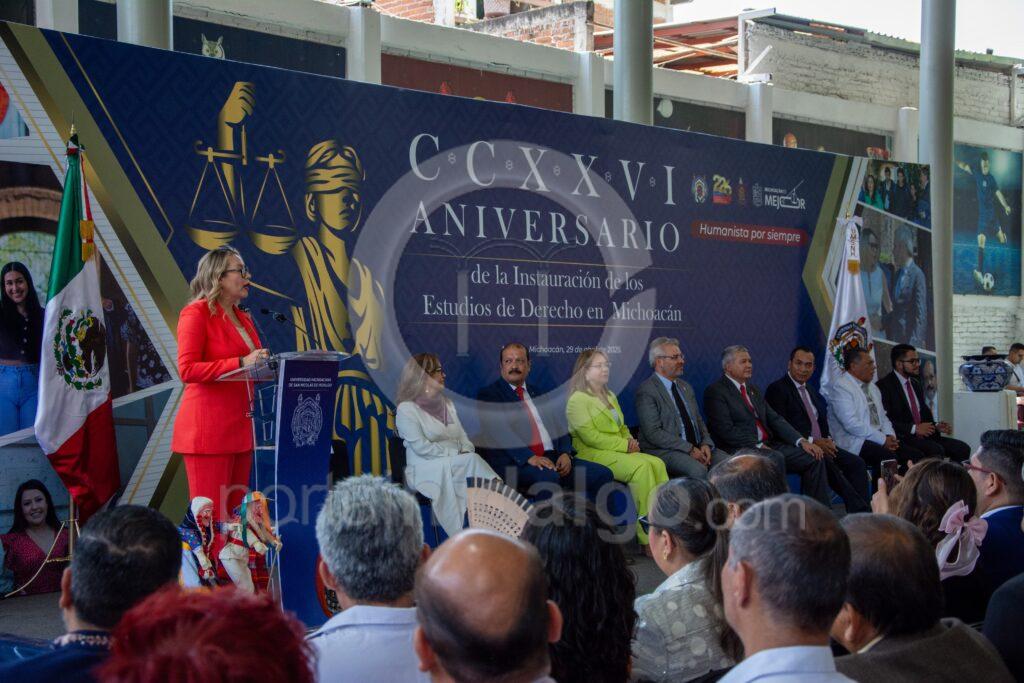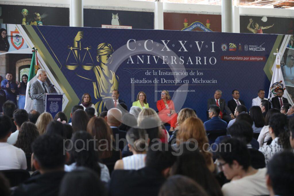 La Universidad Michoacana de hoy, no es la misma de ayer, ya que se ha transformado y ha crecido en el ámbito académico, deportivo y cultural, expresaron asistentes al acto con motivo del CCXXVI aniversario de la Instauración de los Estudios de Derecho en Michoacán, que estuvo encabezado por el gobernador del Estado, Alfredo Ramírez Bedolla y por la rectora Yarabí Ávila González.