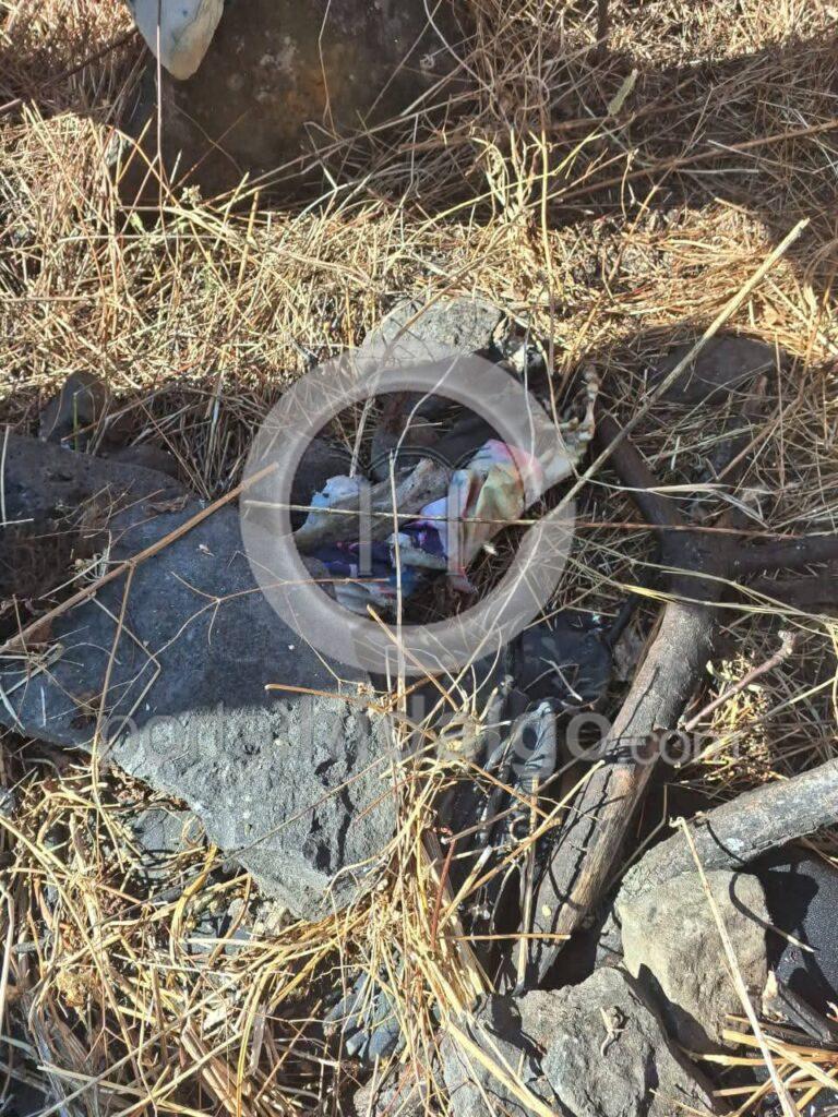A unos metros en un segundo entierro ilegal, se ubicó una osamenta al parecer perteneciente a una persona del sexo masculino, cuya identidad y mayores características son desconocidas.