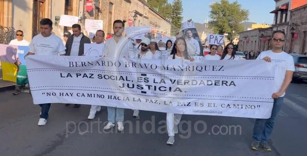 Vestidos de blanco, el contingente partió de fuente de Las Tarascas hasta la Catedral de Morelia en donde, se unirán en la homilía por el descanso eterno del joven empresario quien fuera ejecutado el lunes pasado por la mañana en Tierra Caliente.