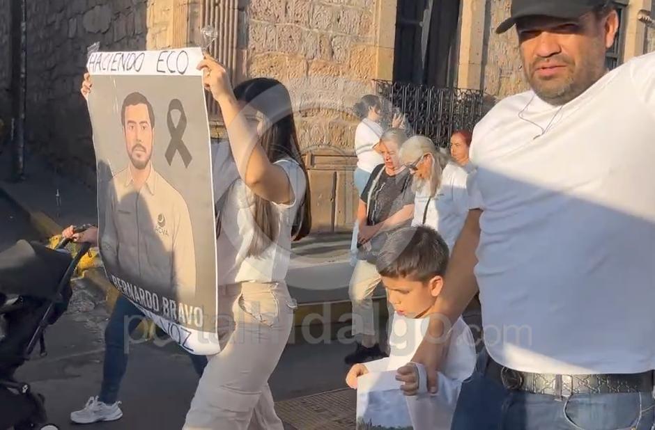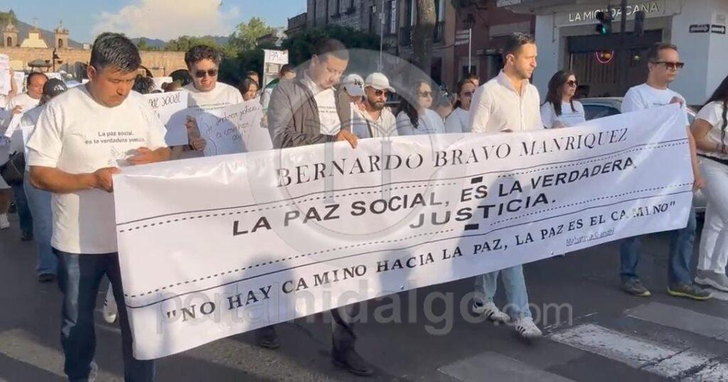 Vestidos de blanco, el contingente partió de fuente de Las Tarascas hasta la Catedral de Morelia en donde, se unirán en la homilía por el descanso eterno del joven empresario quien fuera ejecutado el lunes pasado por la mañana en Tierra Caliente.