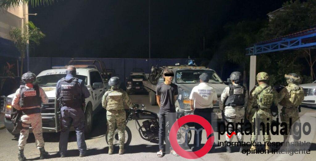 Derivado de los recorridos de vigilancia en los municipios de Lázaro Cárdenas, Arteaga y La Huacana, fueron detenidos siete presuntos infractores de la ley, asegurándose dos vehículos, ocho armas, dos chalecos, 13 motocicletas con reporte de robo, 38 cargadores, 577 cartuchos, ocho dosis de sustancia granulada color blanco con características similares a las de la metanfetamina y siete gramos de sustancia con características similares a las de la marihuana.