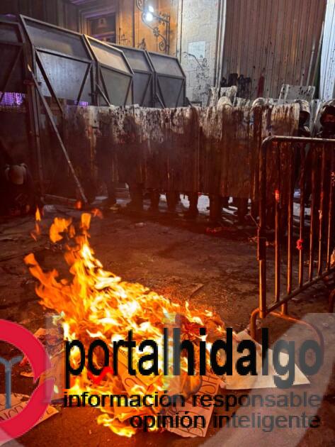 Al culminar la marcha se registró un conato de enfrentamiento entre la Guardia Civil e integrantes del bloque negro justo frente a la puerta principal de Palacio de Gobierno.