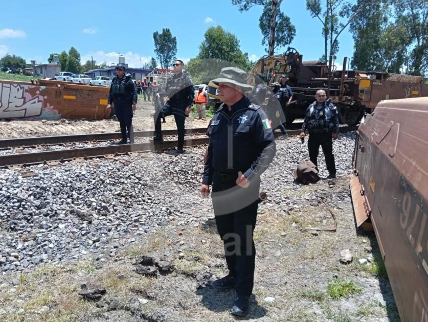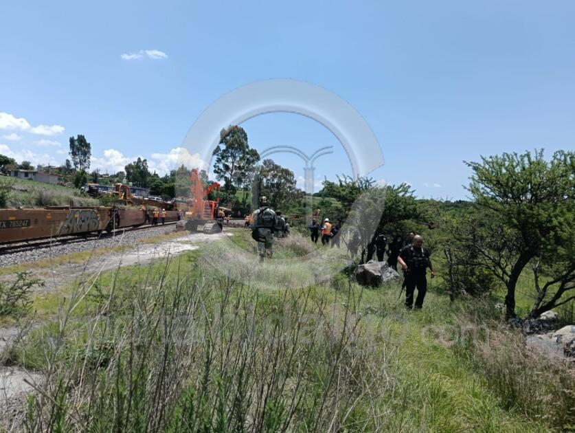 Maravatío, Mich.-En atención a un percance por el descarrilamiento de un tren en el municipio de Maravatío, agentes de Seguridad Pública y de la Defensa Nacional, resguardaron el sitio del accidente.