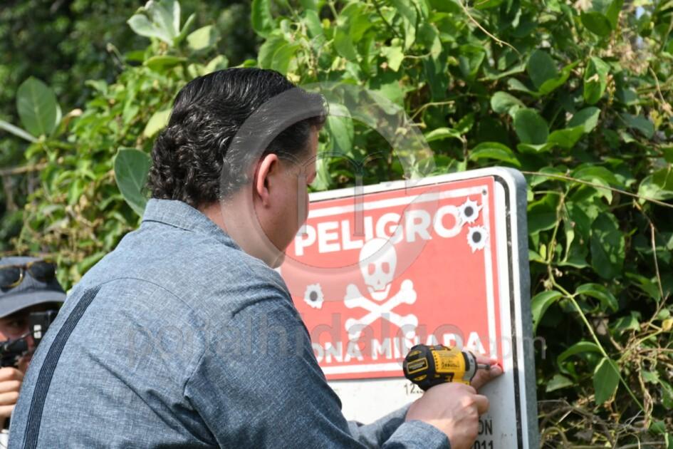 Cabe mencionar, es la segunda ocasión que el legislador acude a esta región para advertir del riesgo que enfrenta la población al transitar por zonas minadas y ahí habló de la importancia de colocar esas señales de alerta para evitar que más personas mueran, toda vez que esos caminos se los disputan integrantes del crimen organizado.