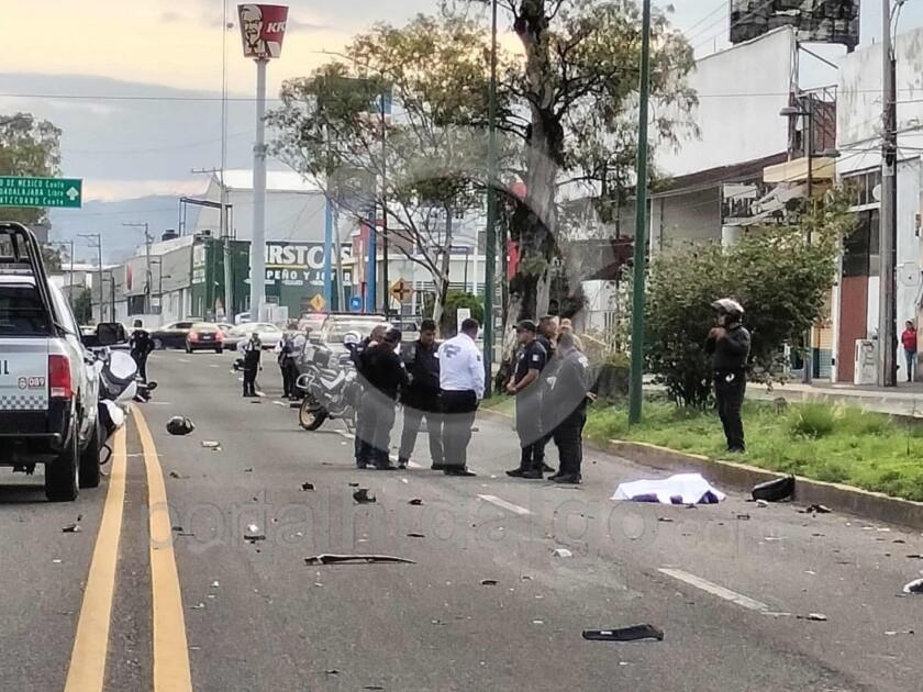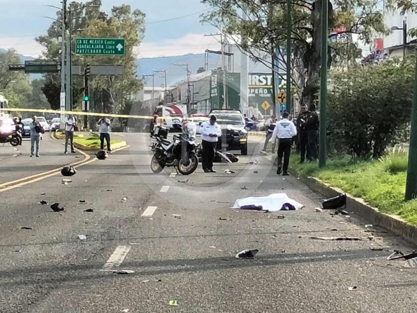Un joven peatón mur1ó tras ser embestido por un motociclista sobre la avenida Madero Poniente de Morelia. El motorista quedó gravemente lesionado y fue canalizado al Hospital Star Médica, donde luego falleció, él era un oficial de la Guardia Civil, quien estaba en su día franco, informaron fuentes allegadas al tema.