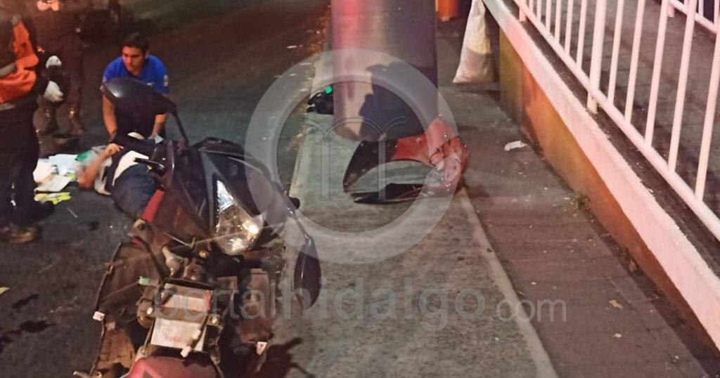 Motociclista choca contra columna de concreto y es hospitalizado