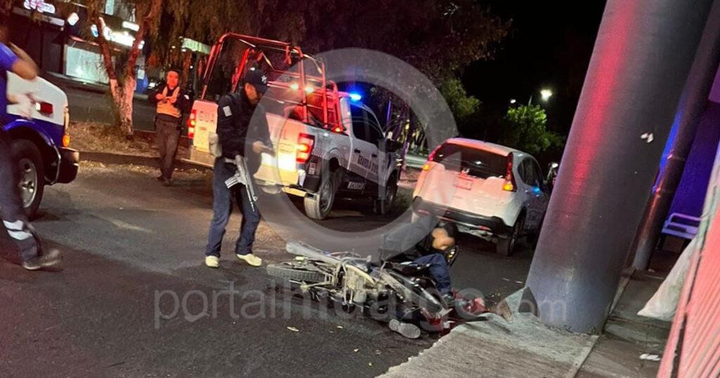 Zamora, Mich.-El empleado de una empresa refresquera resultó con lesiones de consideración al chocar su motocicleta contra una columna de concreto, según confirmaron agentes de vialidad.