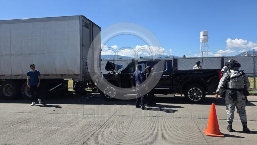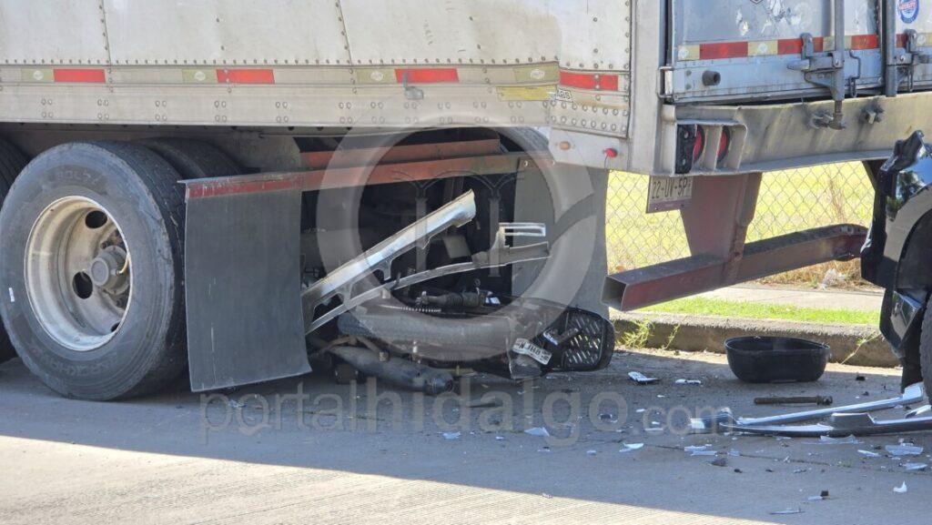 Las unidades involucradas son, una camioneta Chevrolet Cheyenne, de color negro, con placas NR-2540-C, cuyo conductor se dio a la fuga, así como una motocicleta Italika DT125 color plata, con matrícula NJH8Y, la cual termino debajo de un tráiler color blanco, con placas 22-UV-5P del Servicio Público Federal, el cual estaba estacionado.