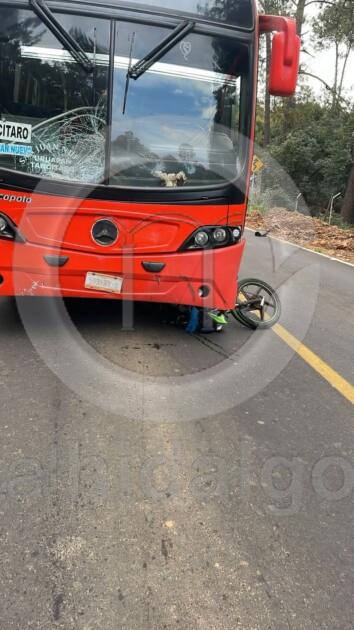 Tancítaro Mich.-Un motociclista perdió la v1da al chocar contra un autobús de pasajeros en la carretera San Juan Nuevo-Tancítaro, la tarde de este sábado.